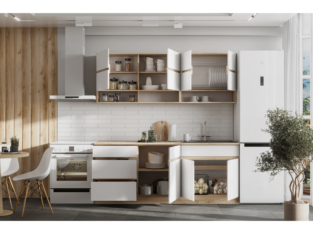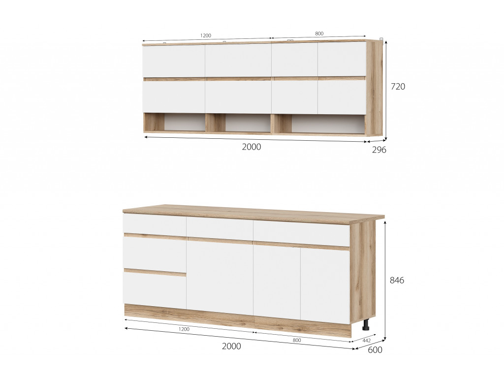 Эта компактная кухня длиной 2,0 метра сочетает в себе функциональность и современный стиль. Оснащена плавными шариковыми направляющими на ящиках, что обеспечивает легкое и бесшумное открывание, долговечность и удобство в использовании.