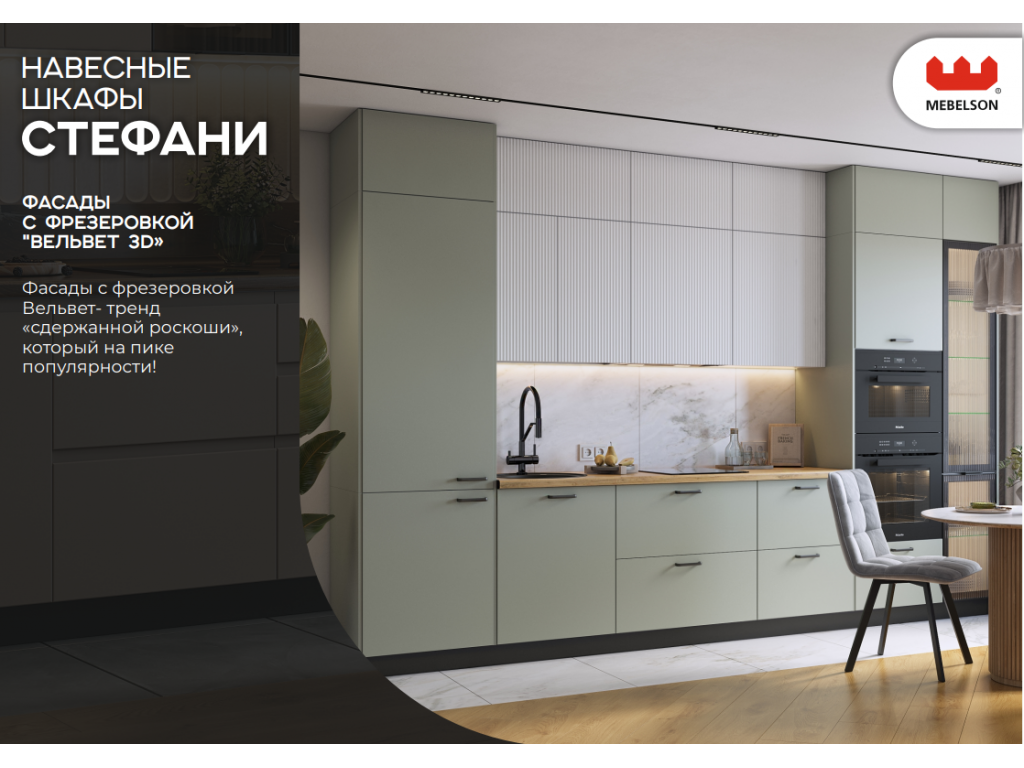 4) Кухня Стефания является дополнением к другим кухням, ее можно комбинировать с любой кухней от фабрики Мебельсон.