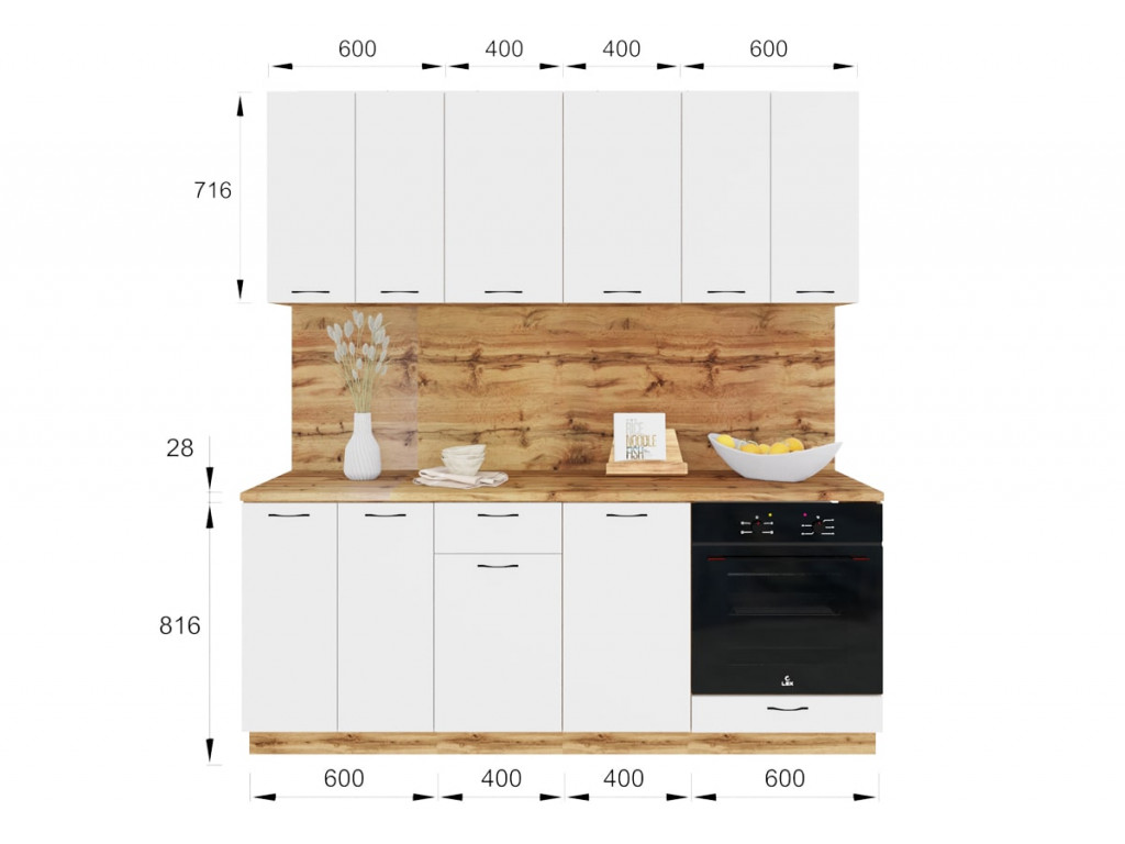 Кухня Лайн ЛДСП 2,0 м (Встроенная техника) отлично подойдет для компактных кухонь.