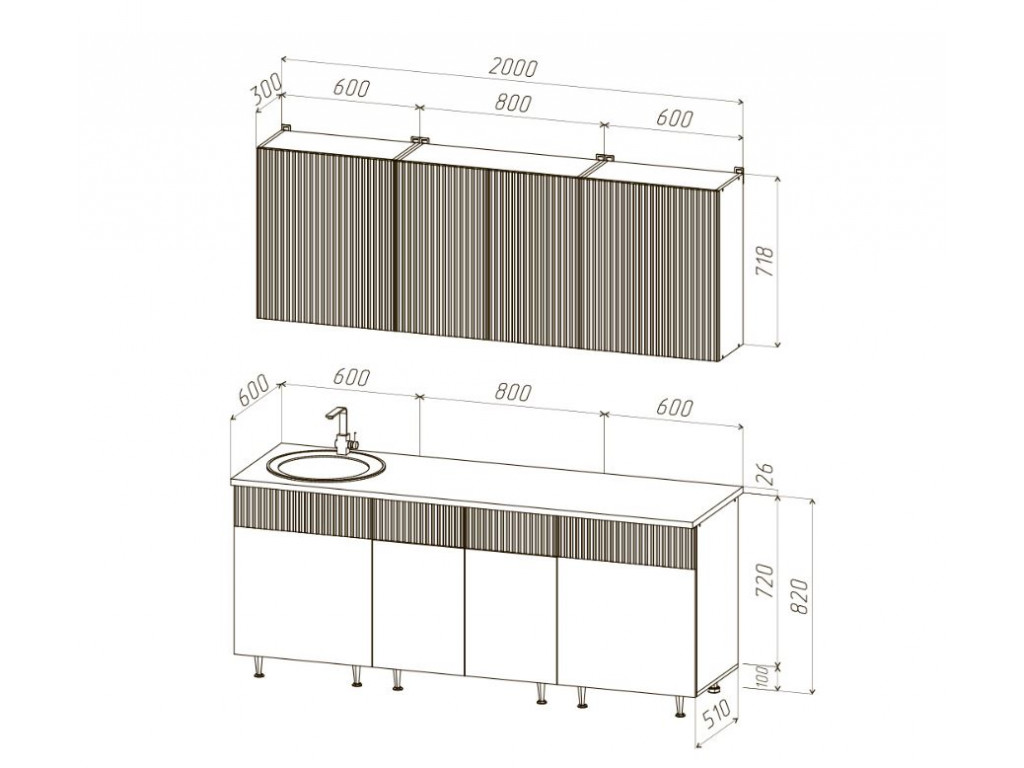 Особенности: Столешница - Антарес. Фасады с фрезеровкой. Фасады покрыты пленкой ПВХ. Верхние модули (ШхВхГ): ШВ1Д600 - 60 х 71.8 х 28 см - 2 шт. ШВ800 - 80 х 71.8 х 28 см - 1 шт. Нижние модули (ШхВхГ): ШНМ1Д600 - 60 х 82 х 49 см - 1 шт. ШН2Я800 - 80 х 82 х 49 см - 1 шт. ШН1Д600 - 60 х 82 х 49 см - 1 шт. Столешница 200 см - 1 шт. Высота нижних модулей указана без учета столешницы. Глубина модулей указана без учета фасада. Цоколь в комплект не входит. Регулирование опор: от 10 до 12 см. Толкатели в комплекте.