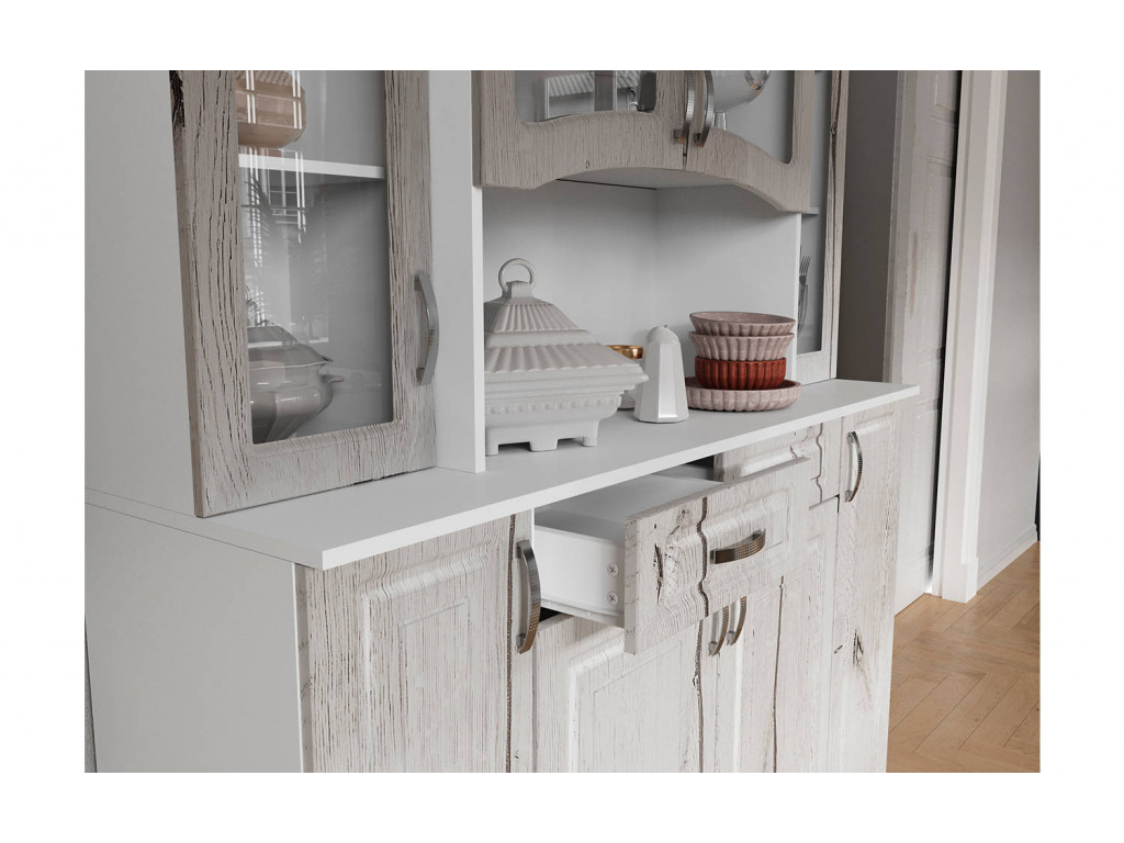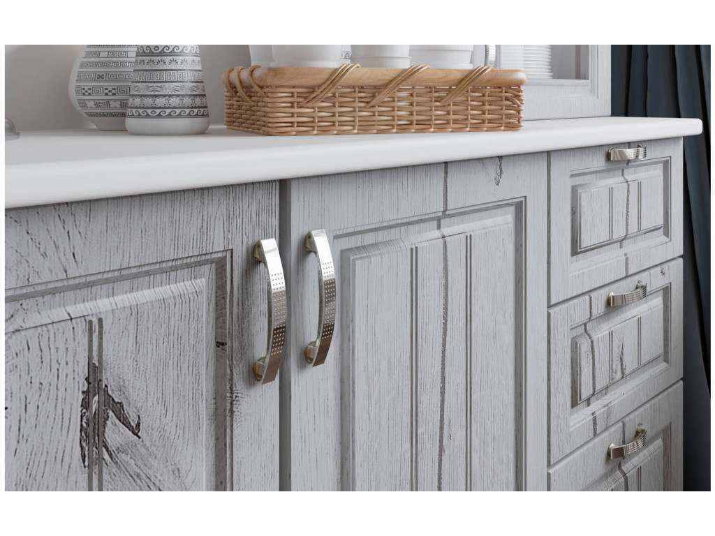 Фасады буфета выполнены из плиты МДФ, облицованными высококачественной матовой пленкой ПВХ