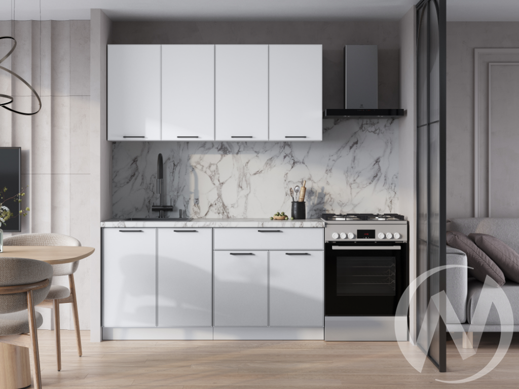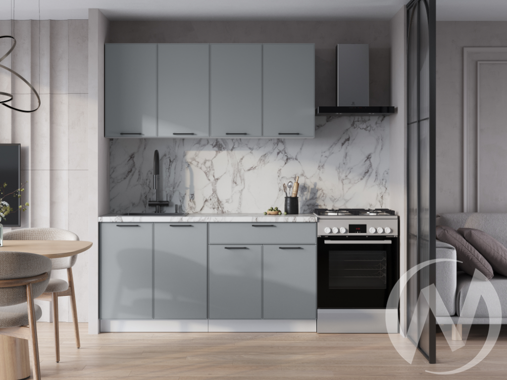 Особенности: Размер верхних модулей: 1600х716х318. Размер нижних модулей по столешнице: 1600х842х600