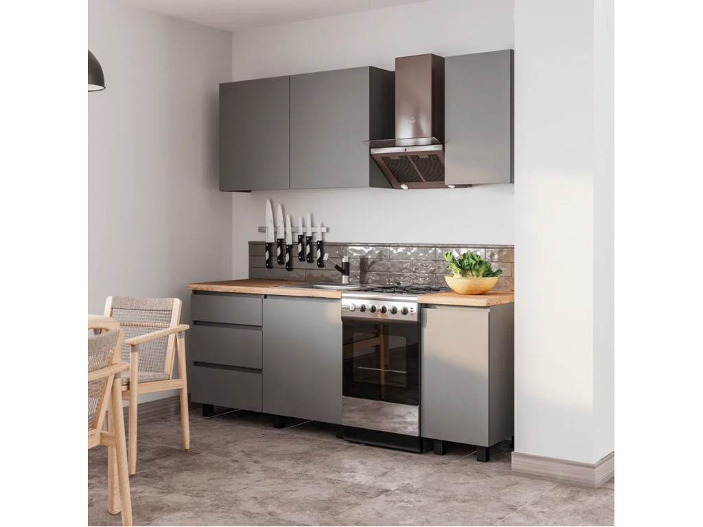 Дизайн кухни "Асти" вдохновлен трендом на минимализм. Прямые четкие линии, матовые фасады без декора и гармоничное сочетание всех блоков делает этот комплект универсальным.