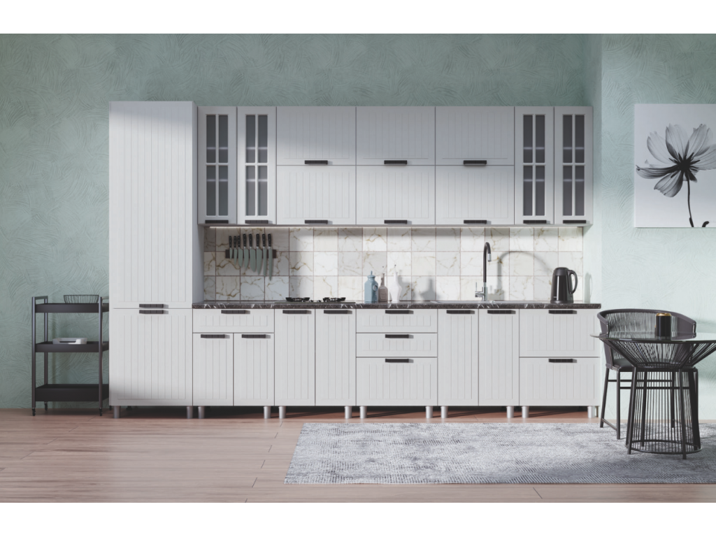 «Орхидея» – коллекция с характером и настроением. Её отличает уникальная фрезеровка: вертикальные линии, вписанные в аккуратную рамку. Такой фасад напоминает уютные кухни в стиле прованс – тёплые, домашние, с ноткой французского очарования.