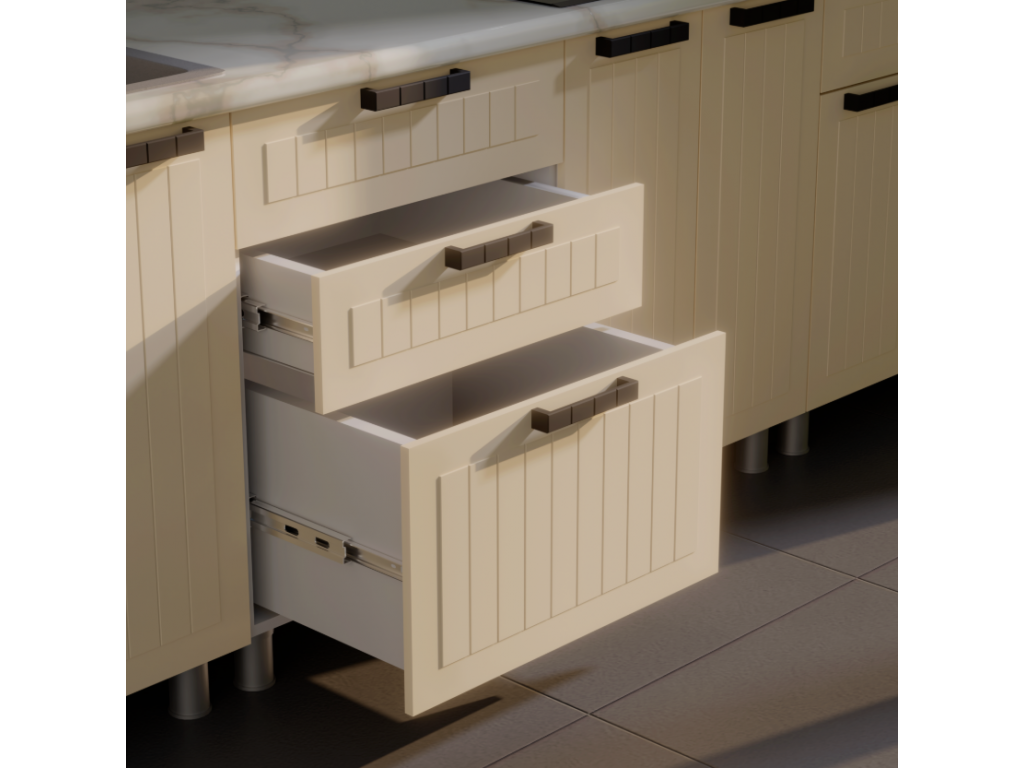 3) Направляющие на ящиках - выкатные полного выдвижения.