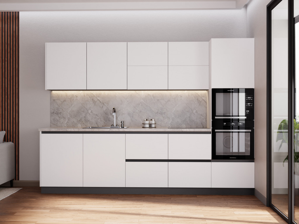 Виано – фасады с покрытием Акрилит, обладающим уникальной устойчивостью к механическим повреждениям, царапинам, ультрафиолету и влаге. Акрилит позволяет сохранить насыщенный цвет и блеск поверхности на долгие годы, обеспечивая премиальный вид кухни.