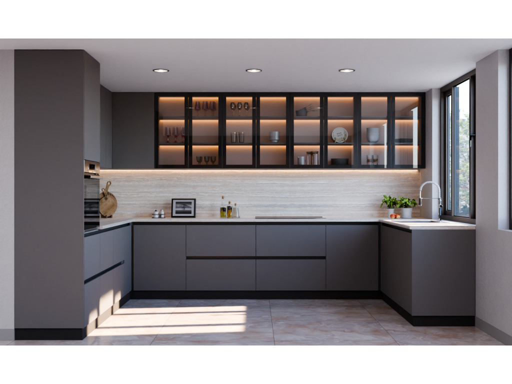 - L-образный профиль Gola — для модулей, расположенных под столешницей, создаёт цельный, лаконичный силуэт фасада