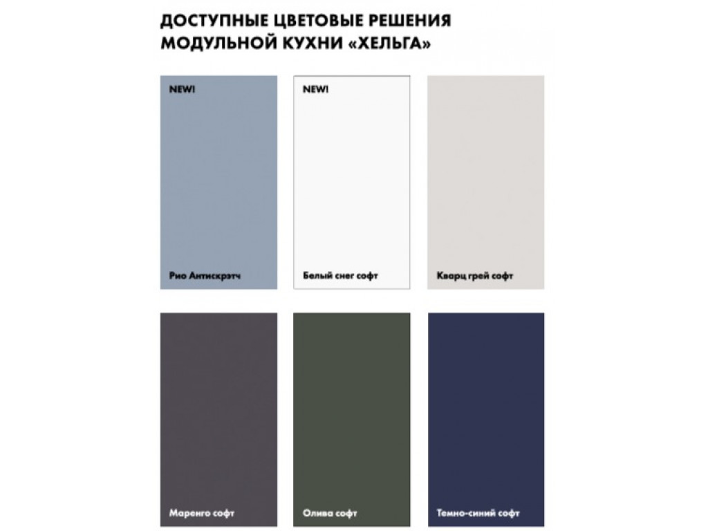 Кухни с интегрированными ручками остаются на пике популярности уже не первый год, поэтому такое решение фасадов можно смело назвать базовым. Фасады кухонного гарнитура «Хельга» выполнены с фрезерованной ручкой трапециевидной формы, размер которой варьируется в зависимости от ширины фасада.