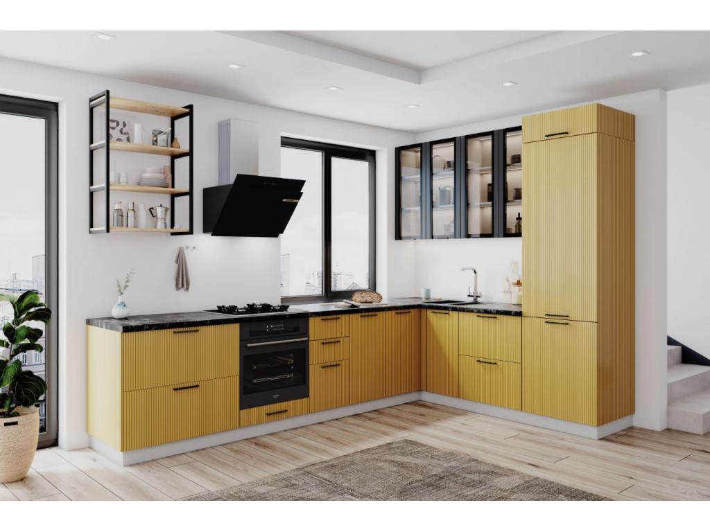 Кухонный гарнитур «Фенис» — изящное воплощение функциональности и стиля, используемые в ее производстве пленки с 3D эффектом, превосходят ожидания владельцев, а насыщенные оттенки придали модулям яркости и контраста.
