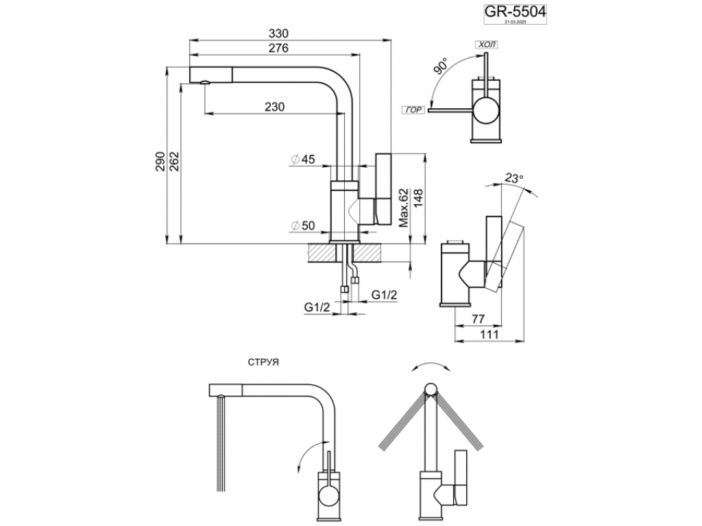 Смеситель GR-5504 – это практичное и стильное решение для Вашей кухни, которое прослужит Вам долгие годы.