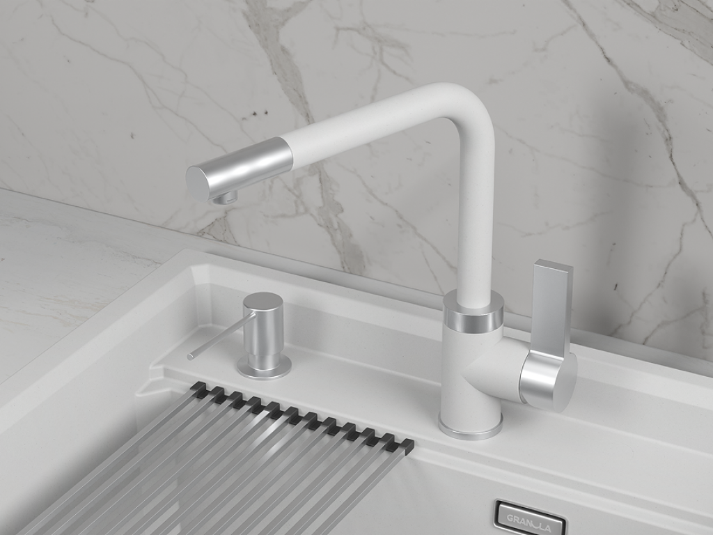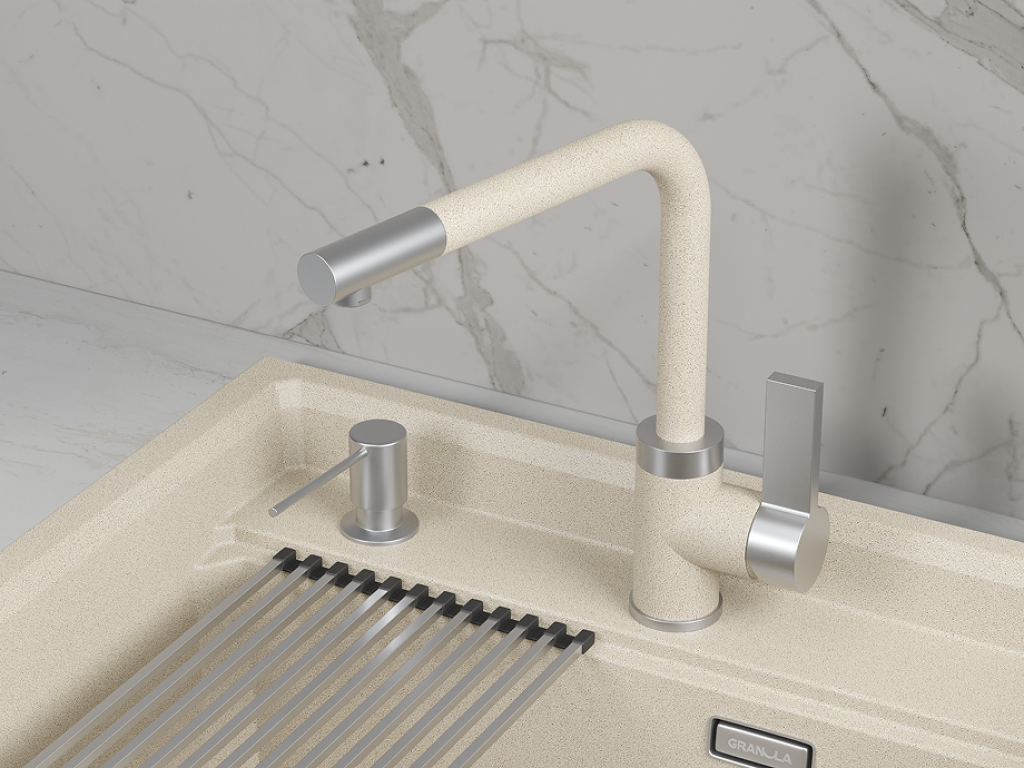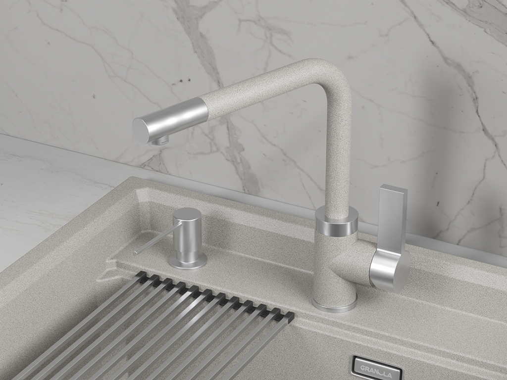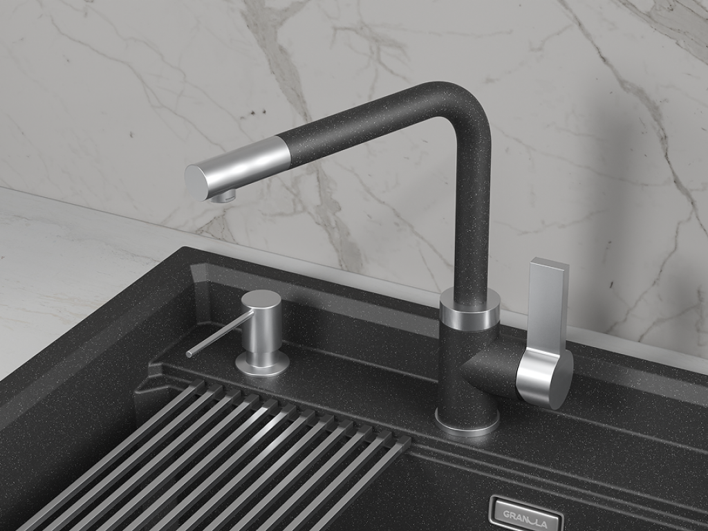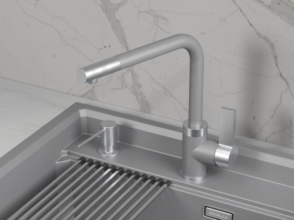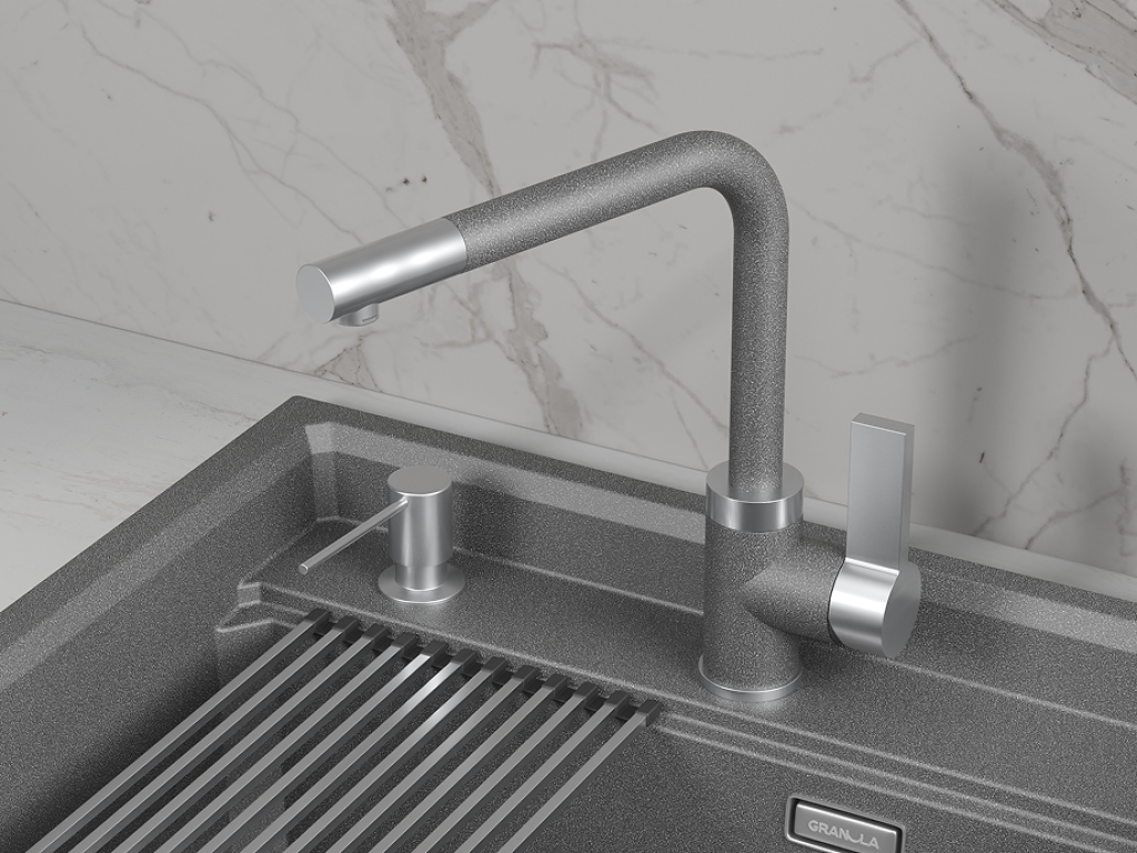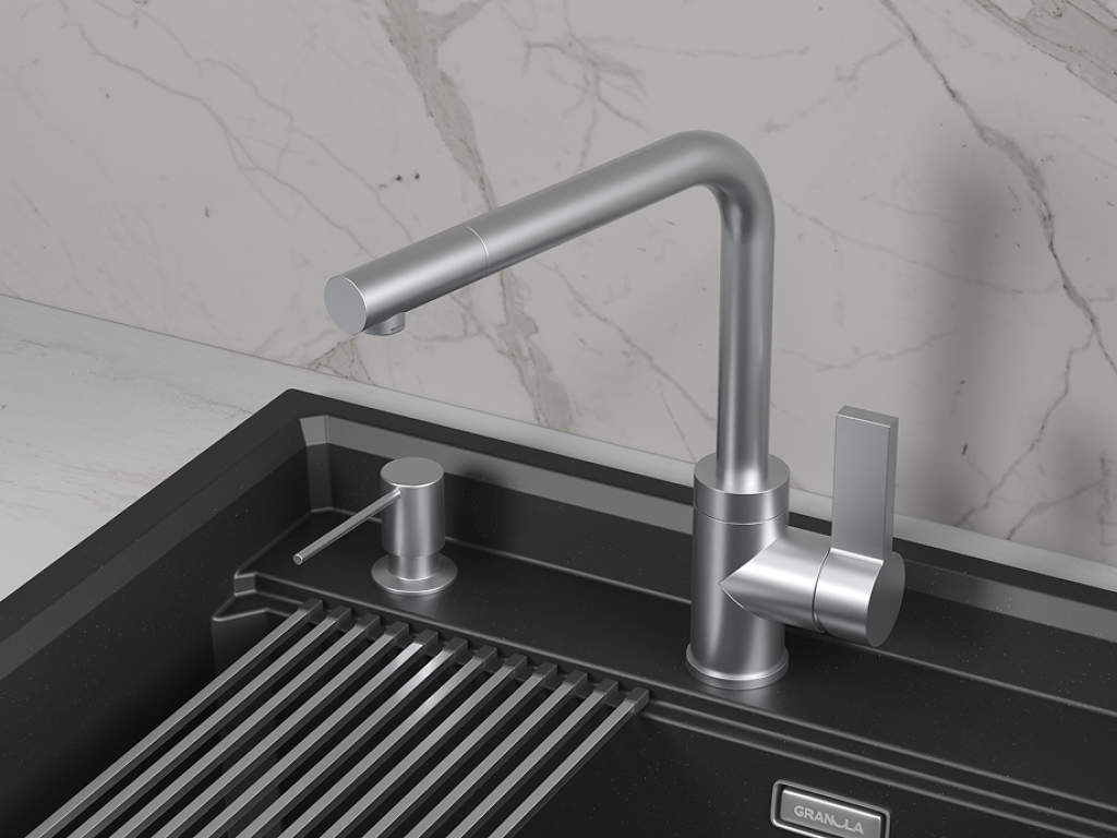 Представляем кухонный смеситель модели GR-5504 из коллекции Granula – идеальное сочетание современного дизайна и надежности. Изготовленный из высококачественной нержавеющей стали, он гарантирует долговечность и устойчивость к коррозии.