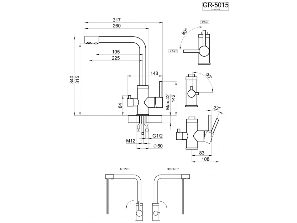 Двойная функциональность: Возможность подключения к фильтру и отдельный выпуск для фильтрованной воды делают этот смеситель универсальным решением для Вашей кухни.
