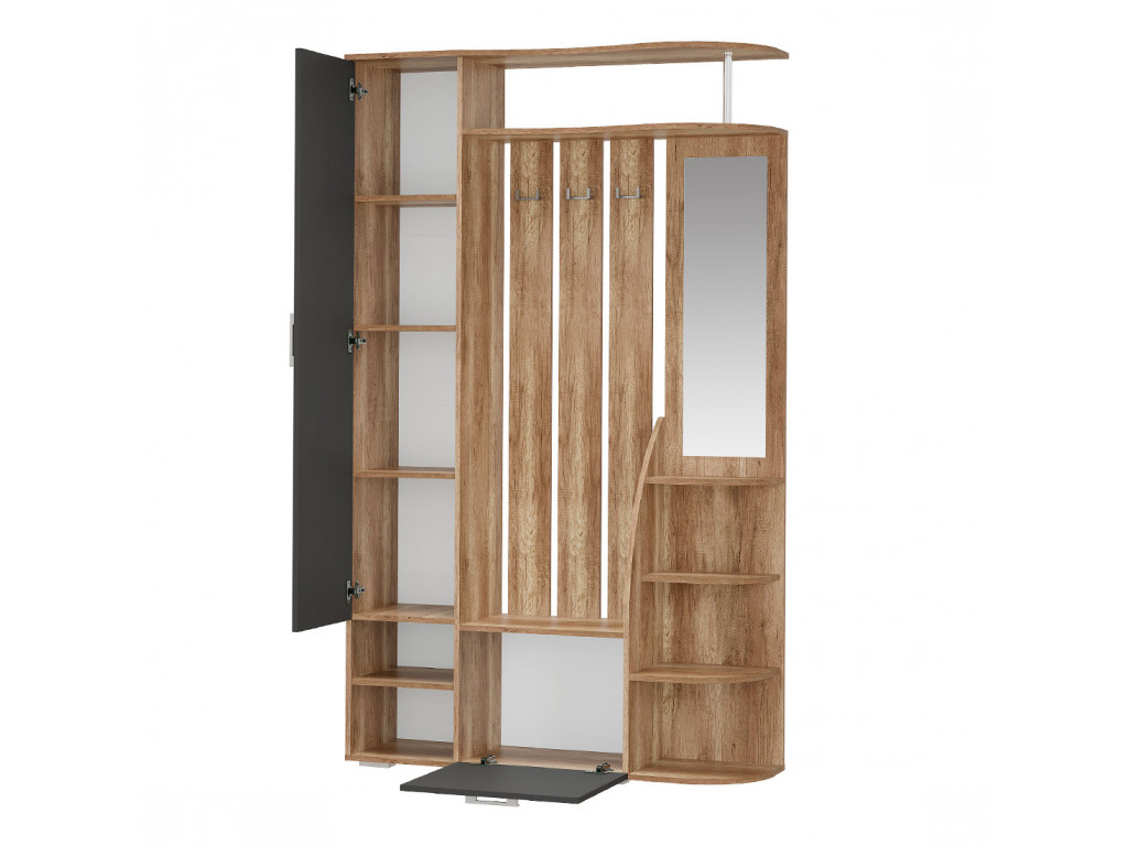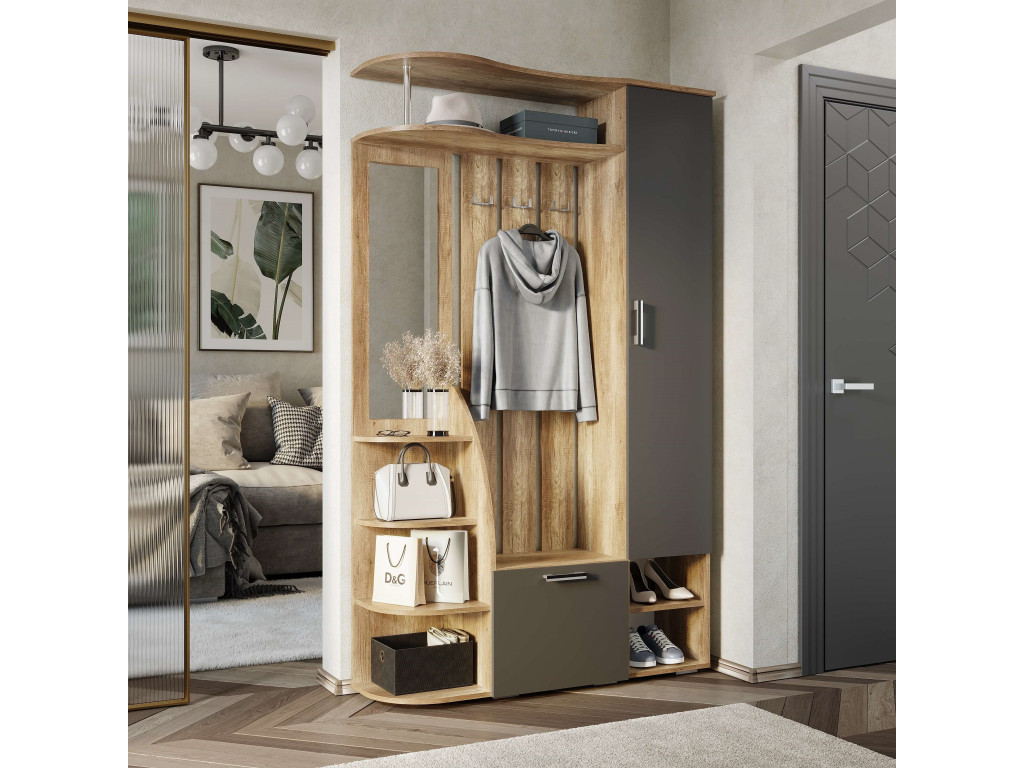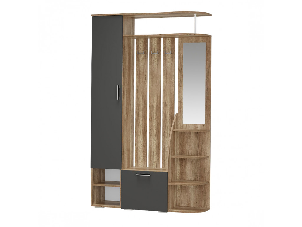 Гарнитур мебели для прихожей «Агата» — это практичное современное решение для вашего дома. Модель выполнена в стильных цветах «дуб каньон» и «графит», которые хорошо дополнят как яркое помещение, так и интерьер с преобладанием натуральных оттенков.