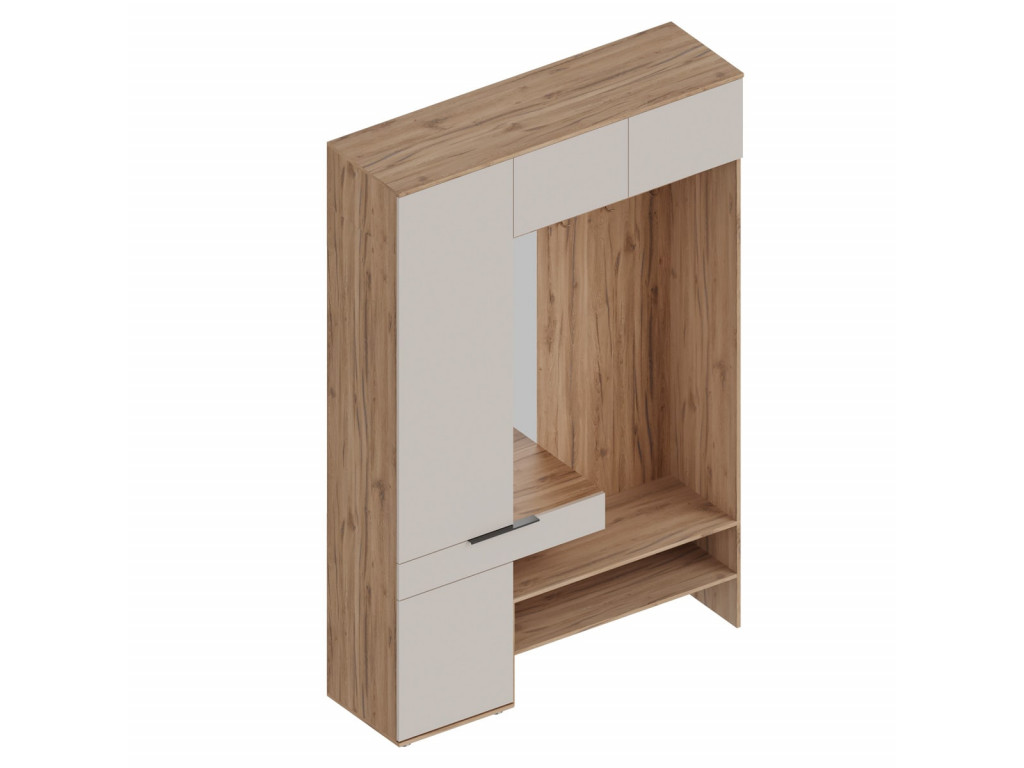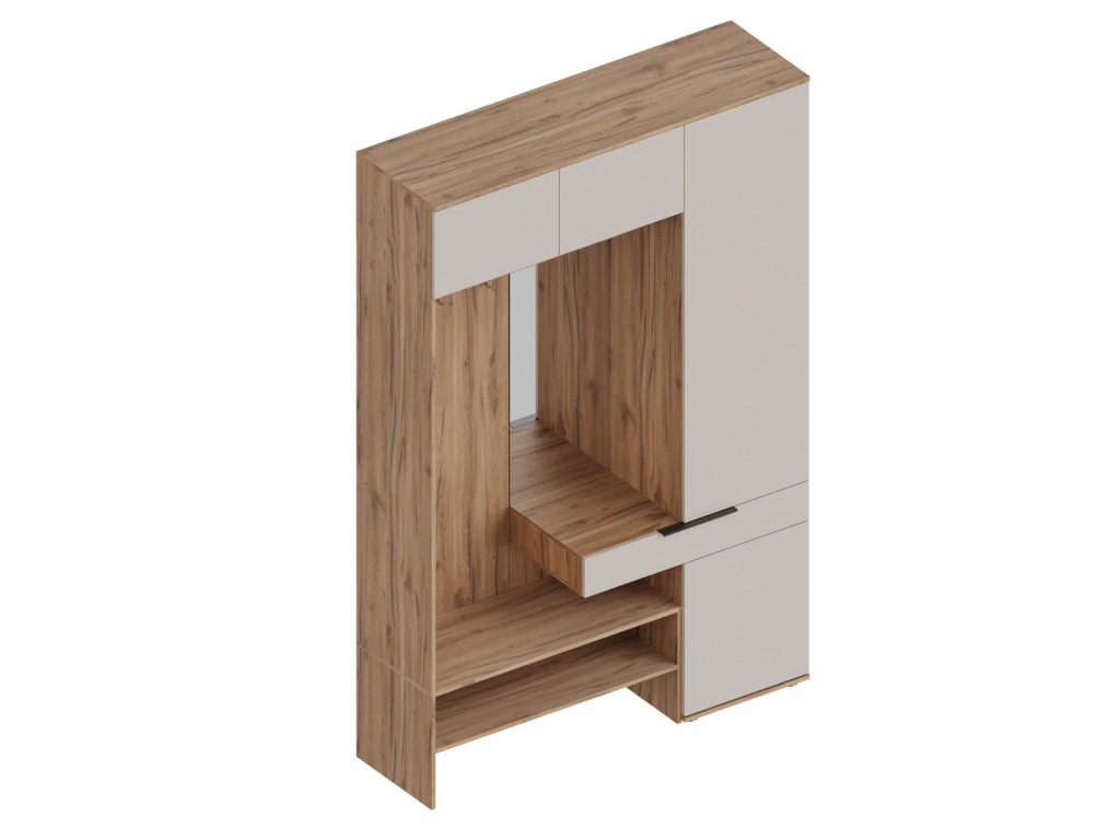 Комплектация:Включает пенал с дверцей для хранения обуви или одежды, антресоль для дополнительных вещей и открытые или закрытые секции для аксессуаров.