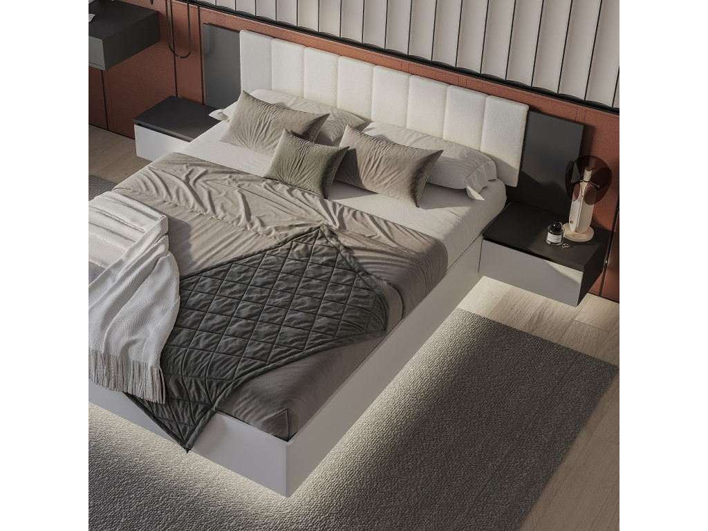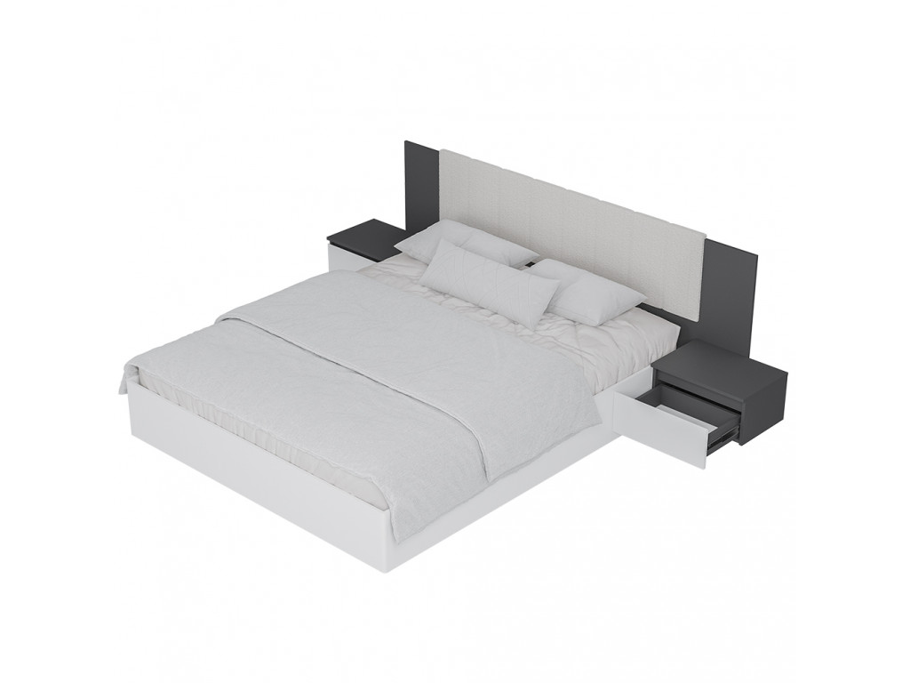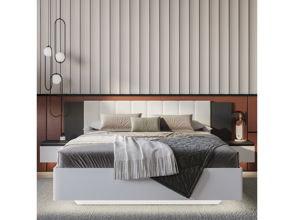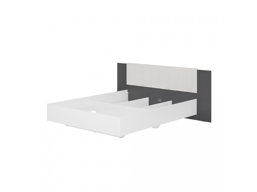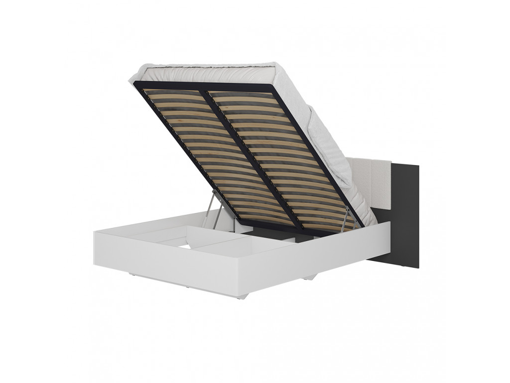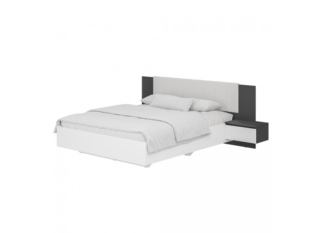 Коллекция "Шарм" - современная классика в контрастном исполнении "белый/графит". Кровать с парящим эффектом в трендовой ткани "барашек" - сердце коллекции. Настил, проложки и ортопедическое основание с подъемным механизмом приобретаются отдельно.