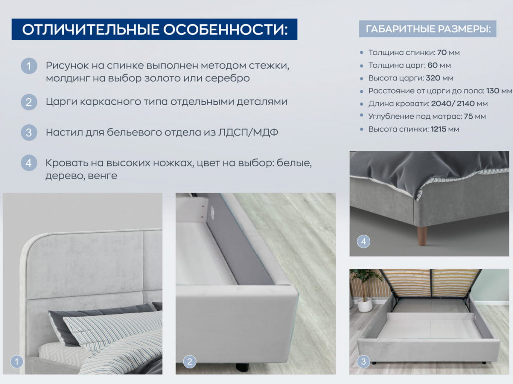 Кровать Bianca с подъемным механизмом (1,2/1,4/1,6/1,8 м)