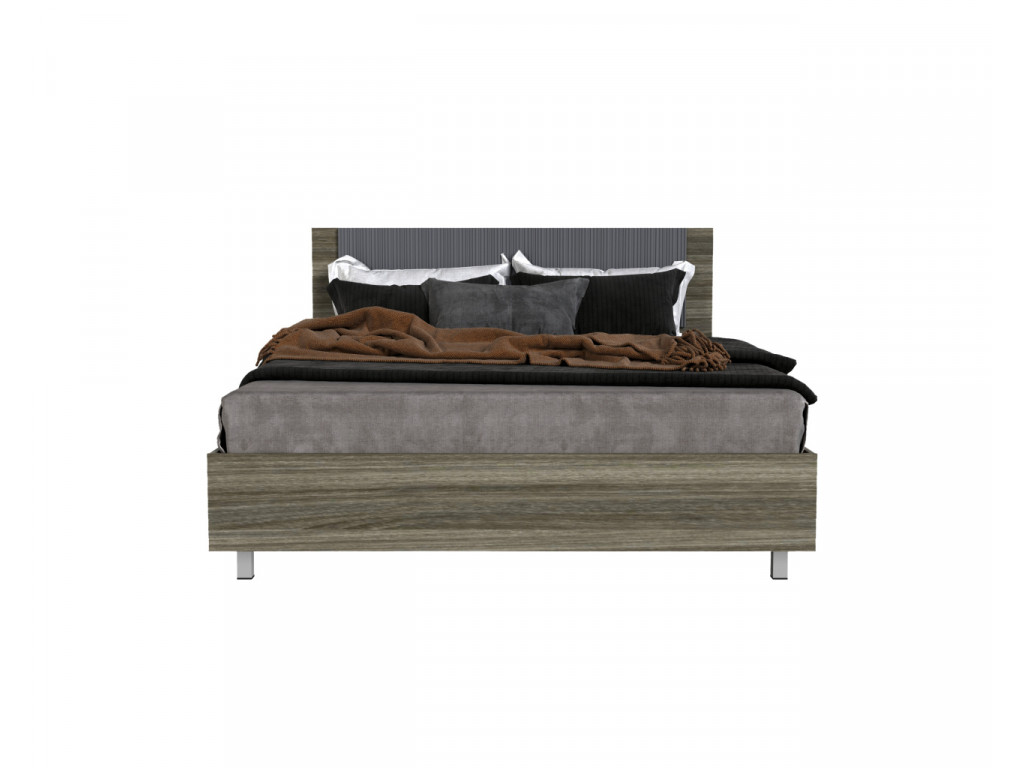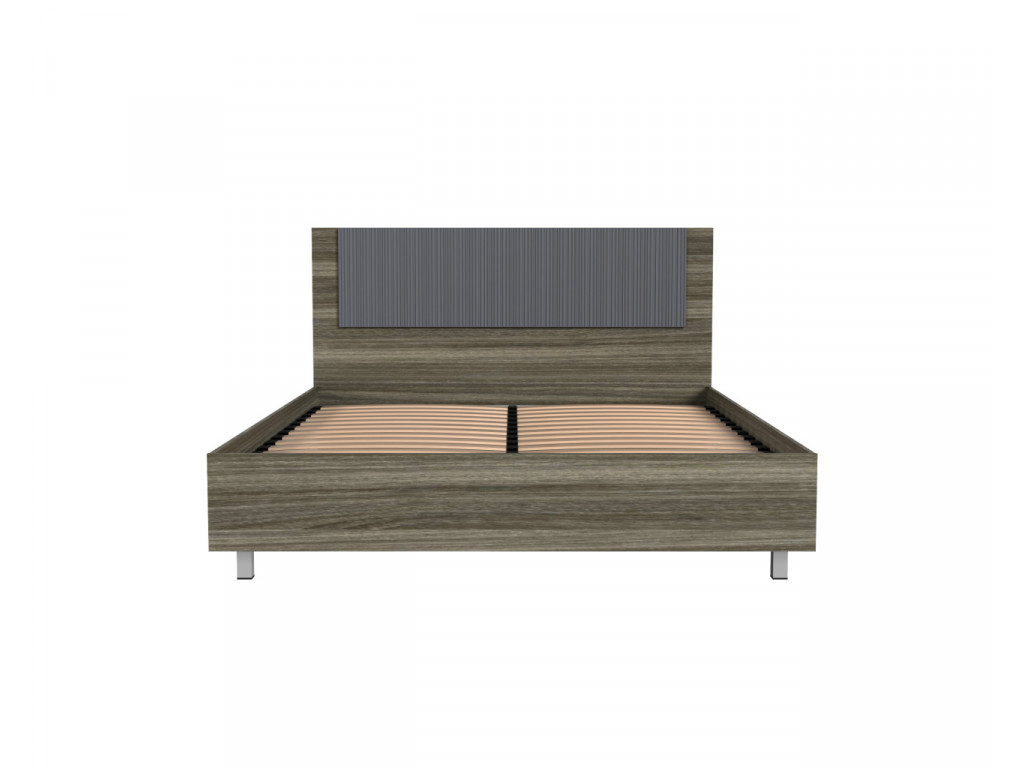 Каркас кровати Кр040.0_160 выполнен в контрастном сочетании материалов: текстура ЛДСП «Джара темная» и благородное матовое покрытие МДФ «Хангва». Такая цветовая гамма формирует глубокий, насыщенно-темный интерьер, который визуально успокаивает и помогает расслабиться после напряженного дня.