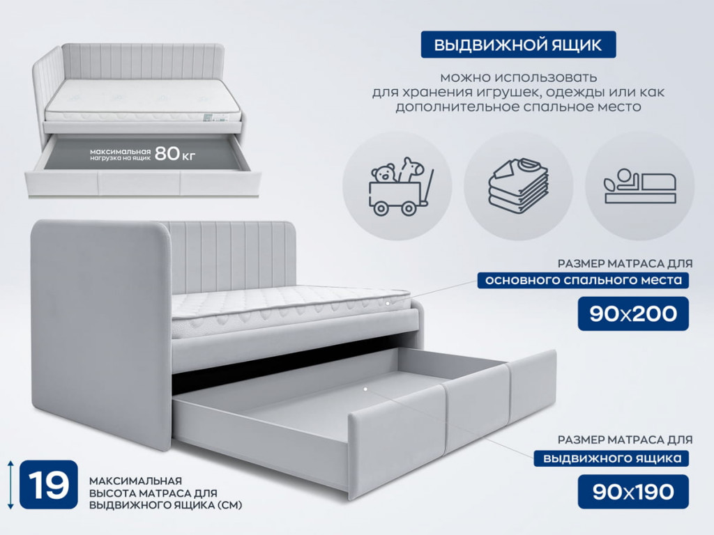 Выдвижной ящик можно использовать для хранения игрушек, или как дополнительное спальное место