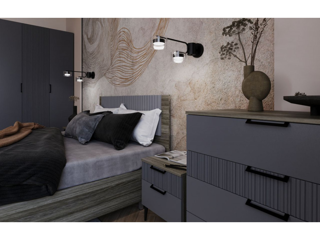 Основная задача тумбы — работать в паре, обрамляя двуспальную кровать. Но благодаря лаконичному дизайну модель легко вписывается и в другие сценарии: