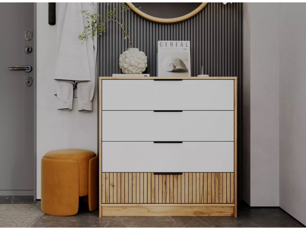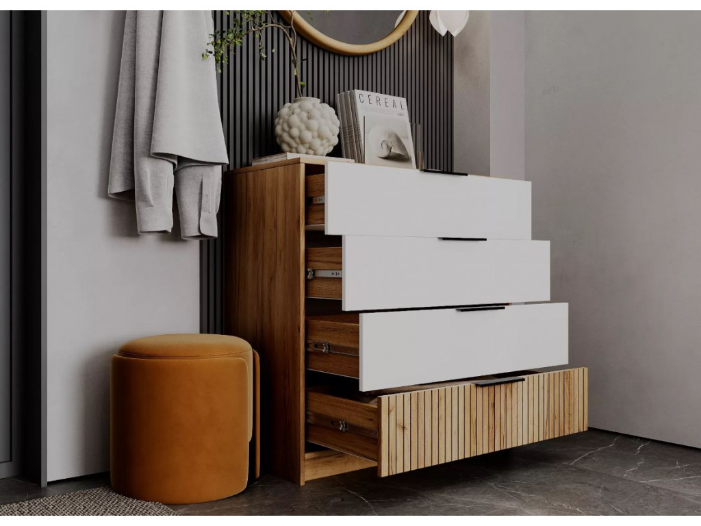 Комод КМ-001 — это идеальное решение для хранения вещей в спальне или прихожей. Модель отличается эргономичным дизайном и продуманной организацией внутреннего пространства. Нижний ящик выделен фасадом с фотопечатью, создавая акцент.