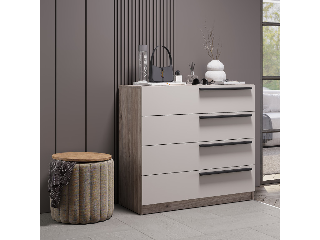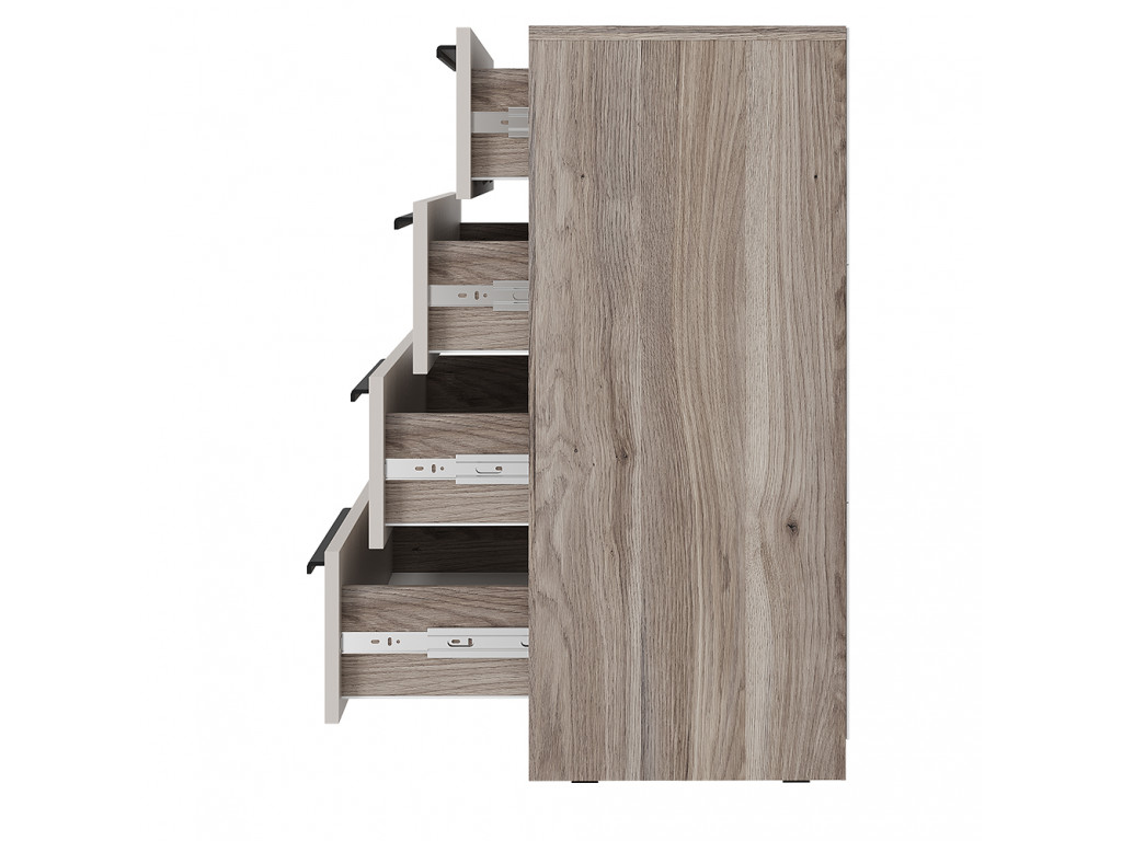 Комод "Урбан" – это универсальная модель, которая подойдет для спальни, домашнего офиса или гостиной. Четыре вместительных ящика станут идеальным дополнительным пространством для хранения белья, одежды, документов и мелочей. Эргономичные ручки из прочного пластика обеспечат удобное ежедневное использование. Устойчивые подпятники защитят напольное покрытие и позволят без труда проводить влажную уборку.