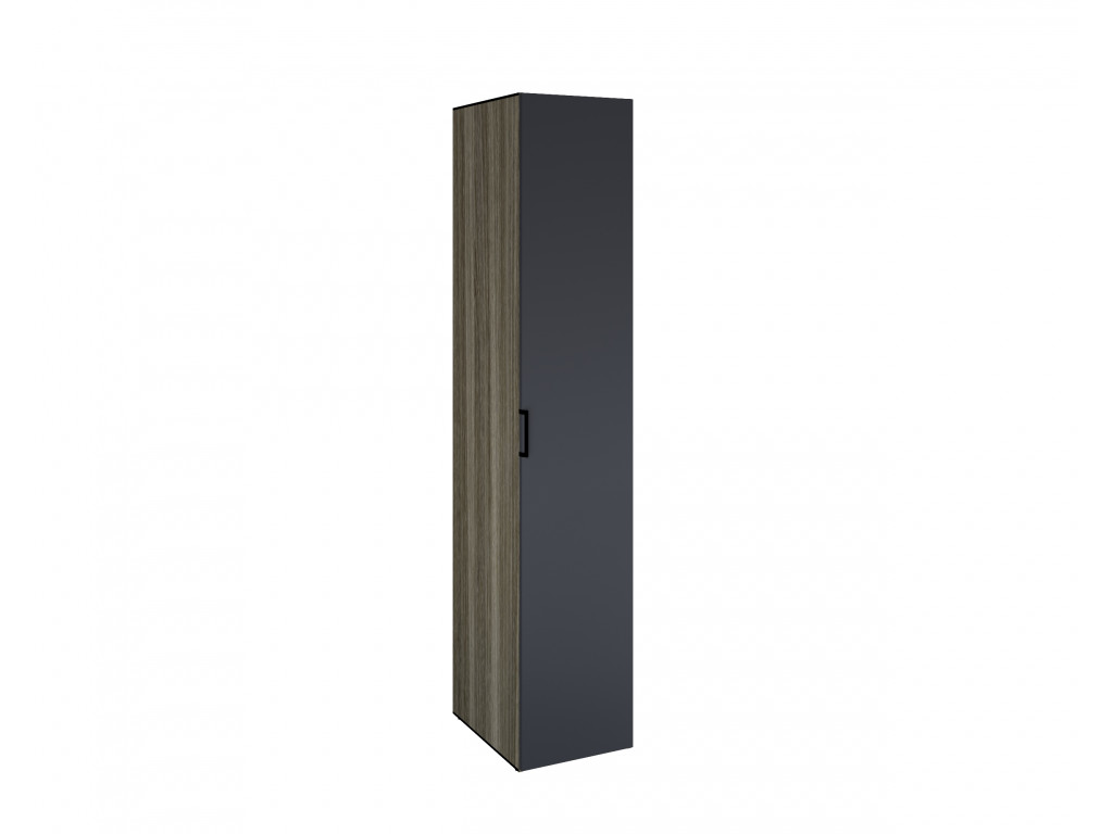 Каркас шкафа выполнен в контрастном сочетании материалов: текстура ЛДСП «Джара темная» и благородное матовое покрытие МДФ «Хангва». Такая цветовая гамма формирует глубокий, насыщенно-темный интерьер, который визуально успокаивает и помогает расслабиться после напряженного дня.