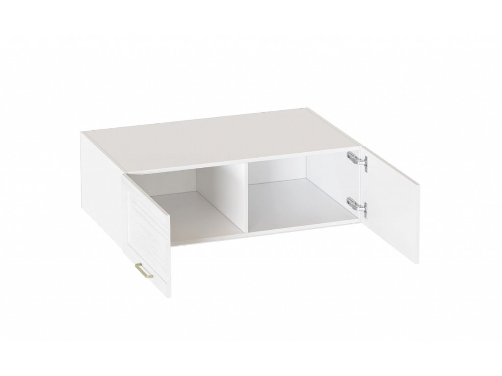 Шкаф выполнен в цвете Айс 06 / Белый Аляска. Классическая фрезеровка фасадов и ручки-скобы из брашированного золота придают изделию особый шарм и элегантность. Внутреннее пространство шкафа разделено натри секции. Верхняя секция шкафа отделена жёсткой полкой. В средней секции под жёсткой полкой расположена овальная штанга. Нижняя секция отделена от средней съемной полкой. Двери оснащены петлями с амортизаторами. Можно добавить антресоль ШхВхГ, мм: 996х320х564