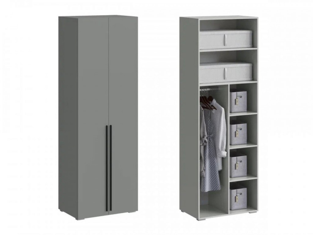 Шкафы для дома Люмьер оснащены петлями с доводчиком и металлическими ручками. Вариативность наполнения и разные форматы угловых шкафов делают коллекцию Люмьер универсальной — для дома, гостиной или прихожей.