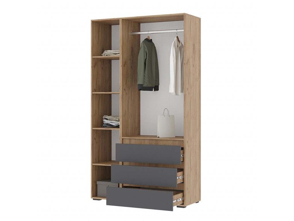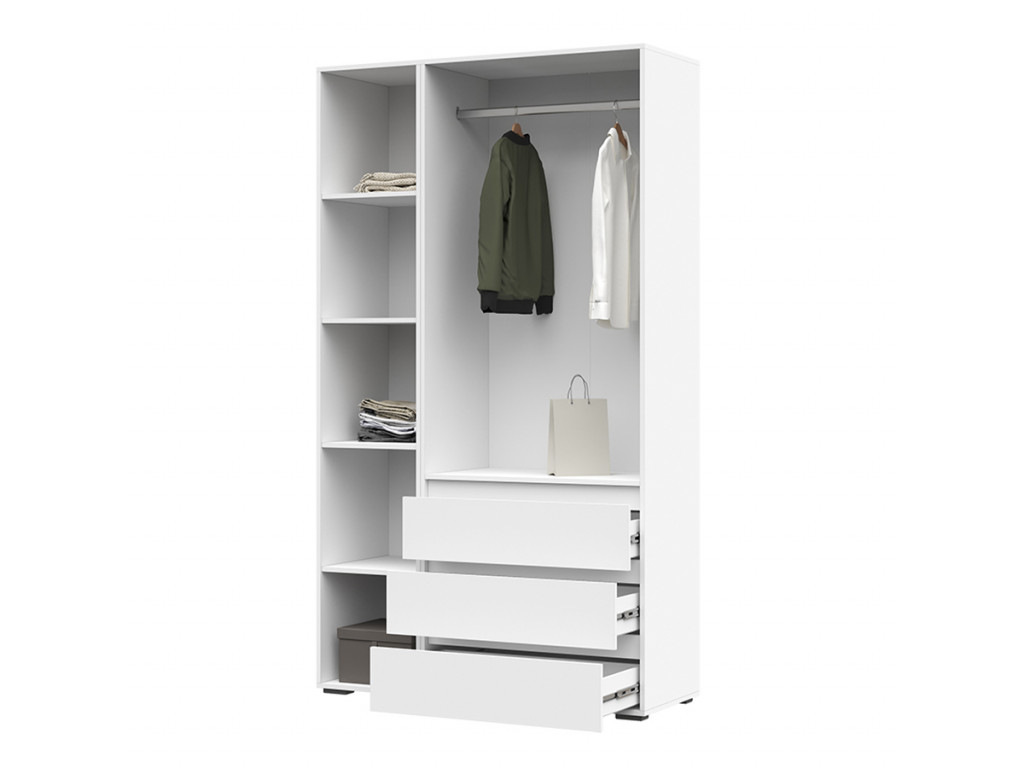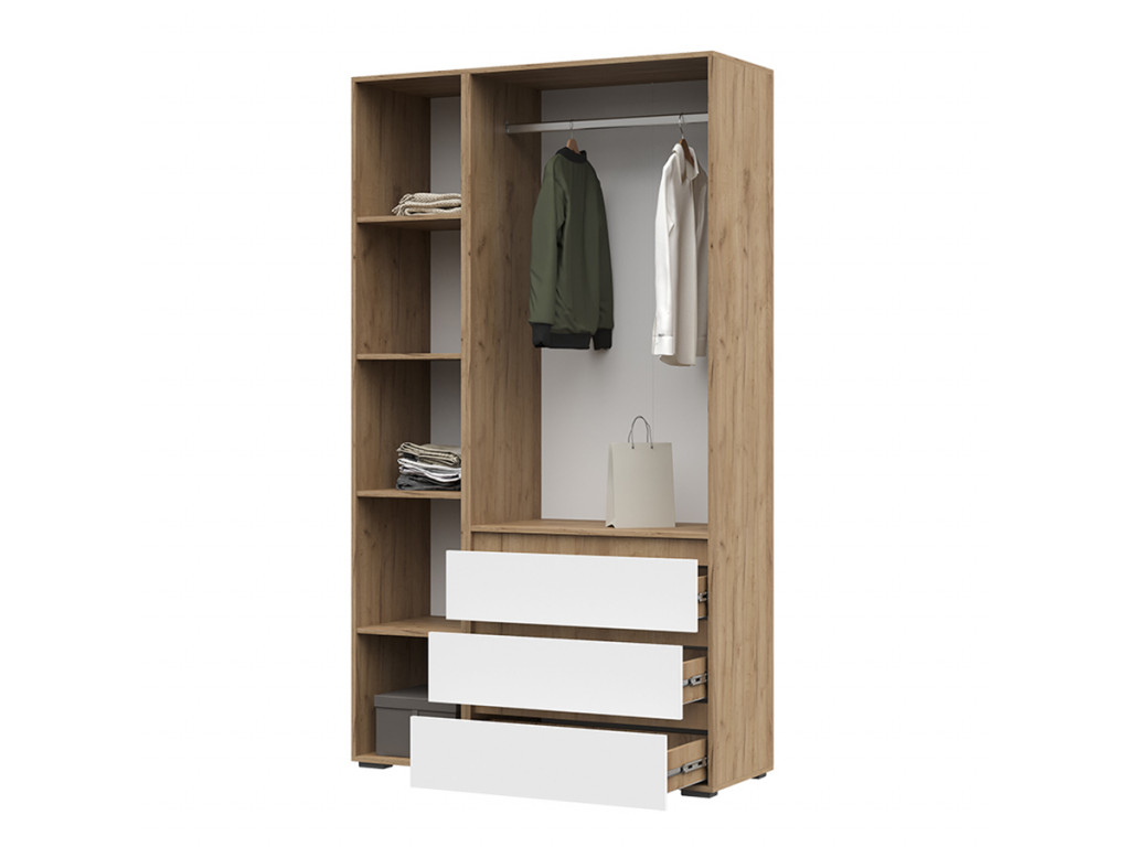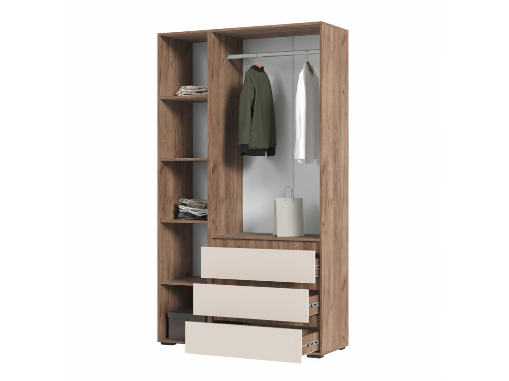 Внутреннее пространство включает отделения для вешалок, полок и ящиков (если предусмотрены), что позволяет рационально организовать вещи
