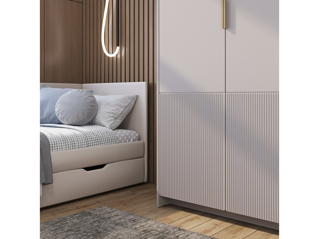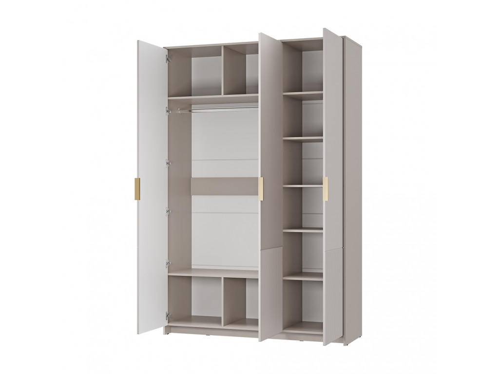 Трехстворчатый «Пандора» оснащен всеми необходимыми зонами для хранения гардероба: полками для трикотажа и белья, отсеком для вертикального хранения, а также полками для белья и аксессуаров. Трехстворчатый шкаф подойдет для обладателей большого гардероба.