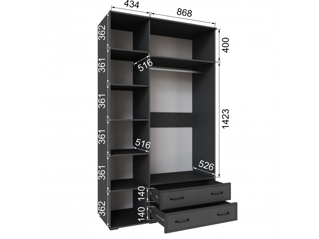 Шкаф Нельсон НШ-23 (1,35 м) (с зеркалом/без зеркала)