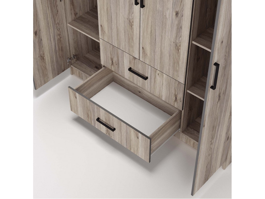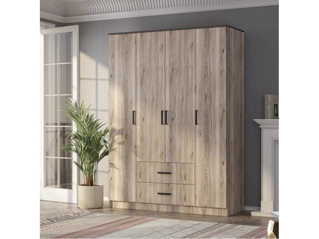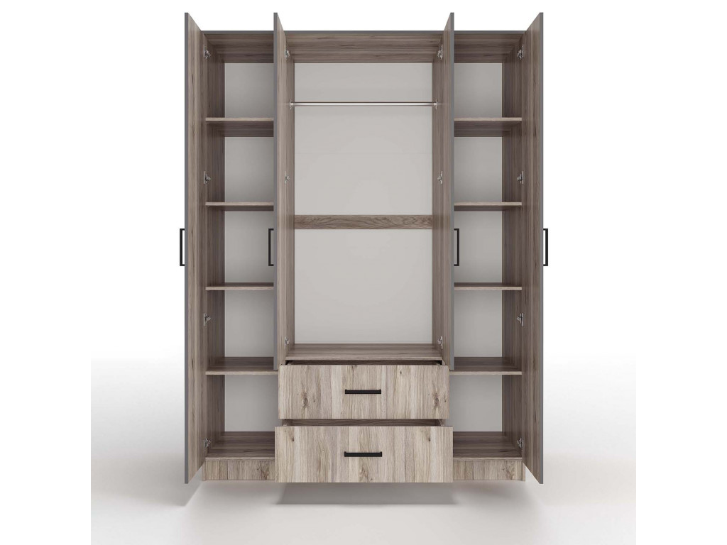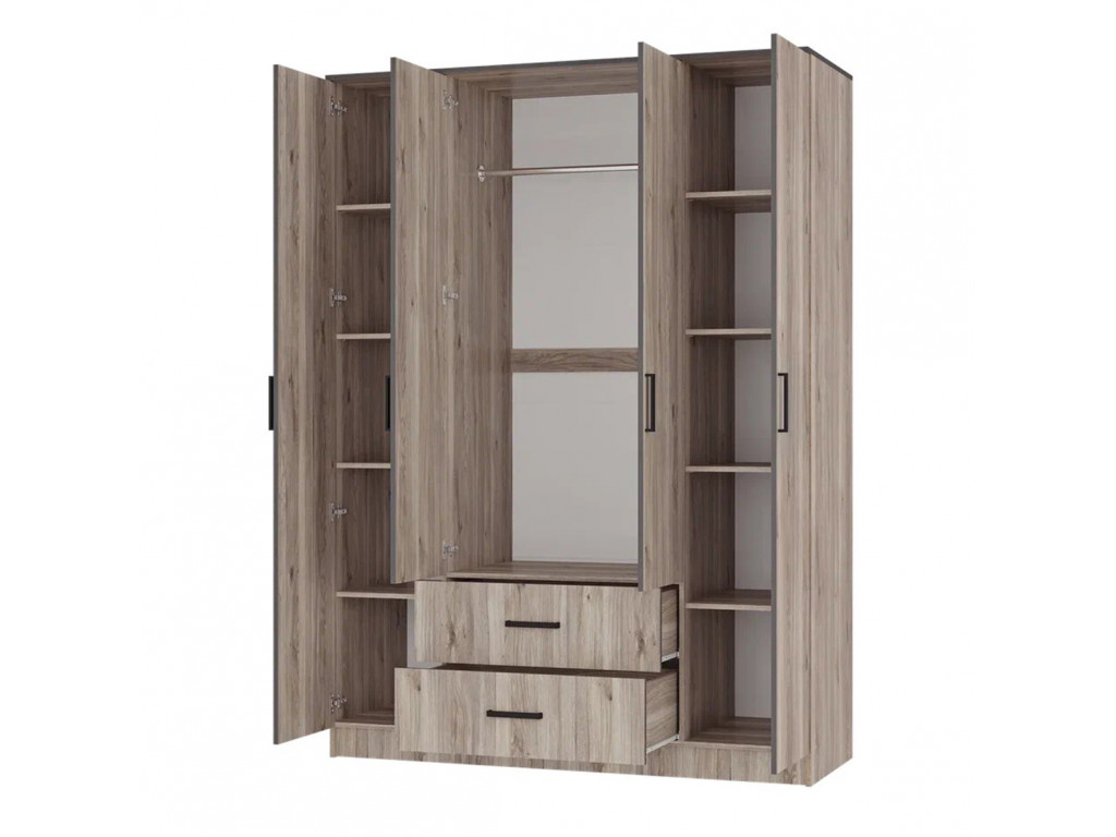 Четырехстворчатый шкаф "Титан" - это элегантное и функциональное решение в трендовом древесном декоре с текстурой дуба. Вместительные ящики. Максимум полезного пространства.