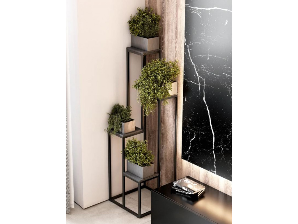 Полки выполнены в цвете Металл Бруклин, а металлокаркас в черном.
