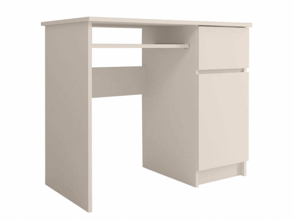 Стол оснащен выдвижной полкой на роликовых направляющих для удобного использования и хранения клавиатуры.
