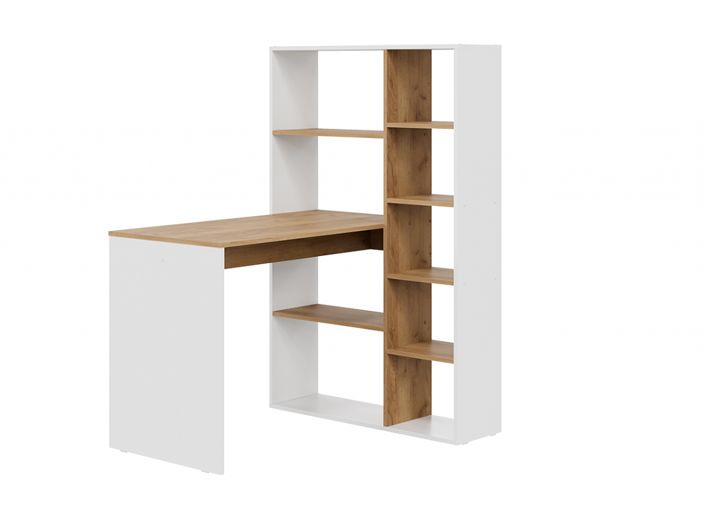 Функциональность. Дома приятно не только отдыхать, но и работать, особенно, если рабочее пространство соответствует всем пожеланиям. Письменный стол тип 16 совместил в себе удобный письменный стол и стеллаж. Данный вариант прекрасно подойдет тем, кто хочет разделить зону комнаты на две части. В одной можно поставить все необходимые элементы для работы и учебы, а в другой – диван или другой предмет мебели. Стол с стеллажом позволит держать в непосредственной близости к рабочему месту все необходимые принадлежности: оргтехнику, бумагу для распечатки, файловые папки, книги.